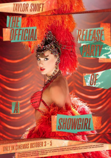 Feiert die offizielle Release-Party von "A Showgirl" vom 3. bis 5. Oktober exklusiv im Kino. Es erwartet Euch unter anderem die Weltpremiere des Musikvideos "The Fate of Ophelia" zusammen mit Behind-the-Scenes-Material vom Dreh des Musikvideos, brandneuen